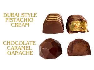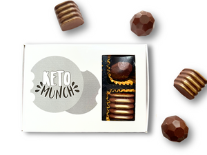 Indulge in our Keto Munch Chocolate Keto Gems, featuring 3 chocolates with a unique twist of Dubai style pistachio cream and 3 with a rich caramel ganache. Made with keto-friendly ingredients, these gems offer both taste and health benefits for a guilt-free treat.