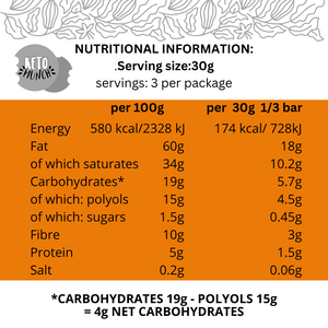 Delicious silky, rich flavour guilt-free bar. Hand crafted with carefully selected, Peruvian and Colombian beans. Inspired by keto, created with passion.
